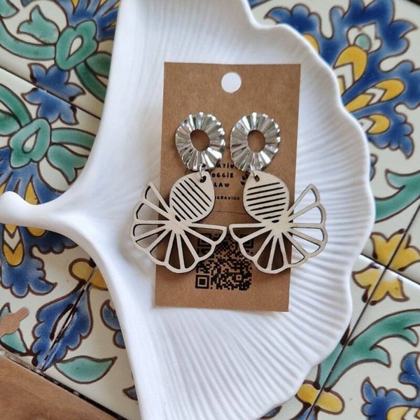 Voeg een vleugje natuurlijke schoonheid toe aan je collectie met onze lichte, ecologische en laser uitgesneden houten oorbellen. Bestel vandaag nog en draag de harmonie van hout en staal!